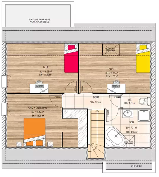 Proposée par MAISONS BERNARD JAMBERT – 6 pièces - 4 chambres - terrain 665 m²