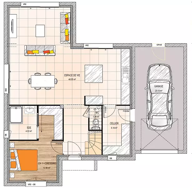 Proposée par MAISONS BERNARD JAMBERT – 5 pièces - 4 chambres - terrain 554 m²
