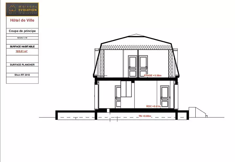À vendre : à proximité de la gare de Maisons-Laffitte, Maisons Evolution Cormeilles-en-Parisis vous propose ce projet de maison de 5 pièces d'une superficie de 105 m², située dans le secteur prisé du Mesnil-le-Roi (78600). Ce bien est composé de quatre chambres, d'une cuisine et de deux salles de bains.