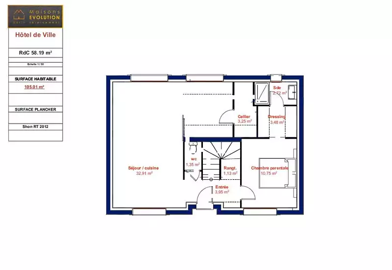 Proposée par MAISONS EVOLUTION – 5 pièces - 4 chambres - terrain 710 m²