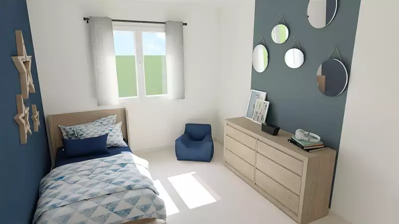 Je vous propose ici, un projet de plain pied de 120m² idéal pour une famille. Vous y trouverez trois chambres avec une salle de bain indépendante ainsi qu'une suite parentale avec son dressing et sa salle d'eau. Une grande pièce de vie ouverte sur l'extérieur vous permettra de profiter de bons moments en famille ou entre amis. Pour le côté fonctionnel, vous disposerez également d'un grand cellier attenant à la cuisine.