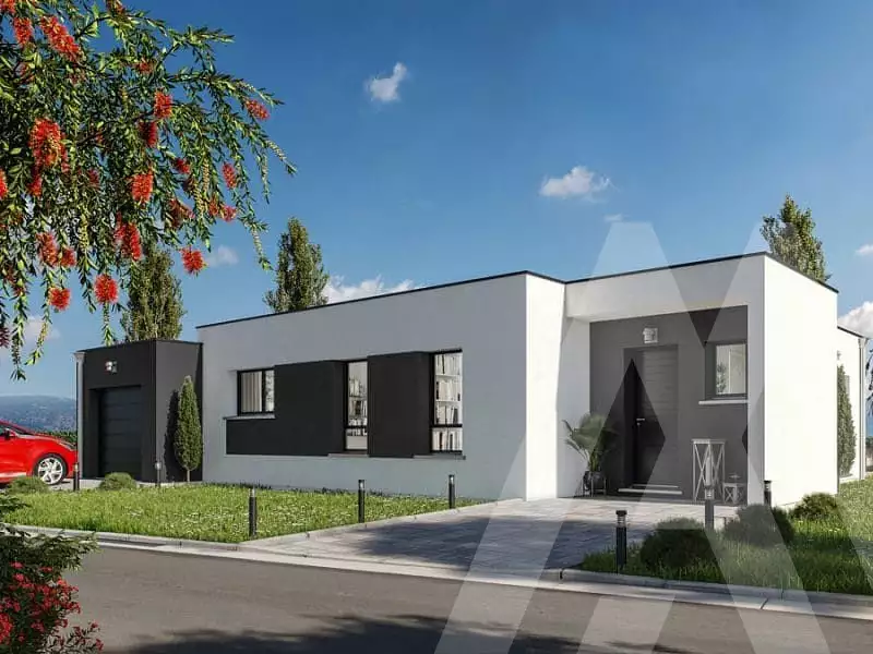 ****************************************************************** Visuel d'illustration. Le modèle est totalement adaptable à vos envies et besoins et personnalisable grâce à de nombreuses options de finition. Nous consulter pour plus d’informations. Le prix affiché comprend le coût du terrain et de la construction hors frais de notaire et taxes. Les annonces de terrains constructibles sont sélectionnées auprès de nos partenaires fonciers selon disponibilités et autorisation de publicité en vue de construire une maison neuve avec un Contrat de Construction de Maison Individuelle dans le cadre de la loi du 19/12/1990. Ces derniers sont soit des professionnels dûment habilités à la transaction immobilière, soit des particuliers. Les terrains sélectionnés sont disponibles à la date de la première parution de l’annonce. En aucun cas Maisons ARLOGIS ou ses collaborateurs ne sont propriétaires des terrains, ne jouent un rôle d’intermédiation ou de négociation sur la transaction et ne participent à la vente. Prix indiqués par nos partenaires fonciers.