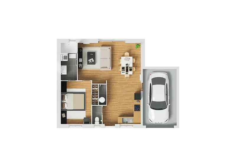 Bienvenue dans l'avenir de l'habitat avec EVOLIA, une maison modulable et transformable qui s'adapte à vos besoins. Transformez facilement une maison d'une chambre en une maison de deux chambres grâce à un garage de 15 m² aménageable. Avec ses nombreuses options de personnalisation, EVOLIA vous offre un confort inégalé et une modernité à un prix abordable. Faites de vos rêves de propriété une réalité et commencez à bâtir votre futur dès aujourd'hui !. Votre avenir commence ici ! Contactez-nous dès maintenant pour plus d'informations. Prix hors fourniture et pose : des appareils sanitaires (sauf système de chauffage et d'eau chaude sanitaire), du carrelage, de la faïence, de la cuisine aménagée, des revêtements de sol dans les chambres. Hors décoration, aménagement intérieur, peinture, raccordements, frais de notaire et dommage ouvrage. (Surface habitable 49 m²+garage 15 m²).