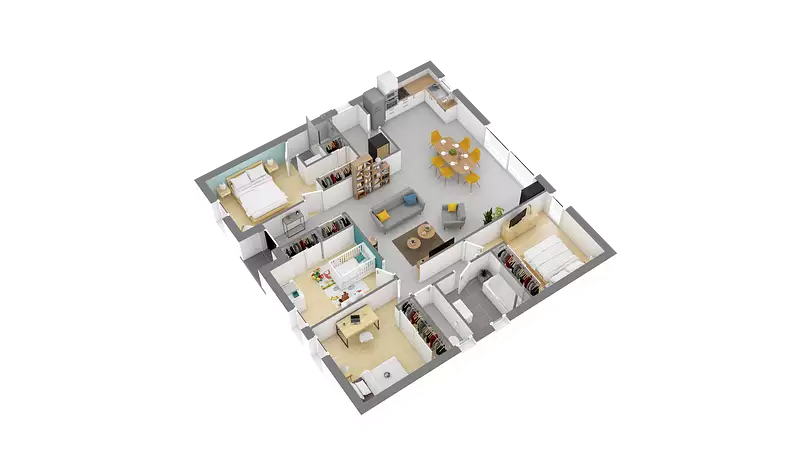 Familiale et fonctionnelle cette maison de 106 m² habitables vous séduira par ses volumes et son aménagement. Son très bel espace de vie de 47 m² environ avec sa cuisine ouverte avec accès direct au jardin grâce à sa baie vitrée. L’espace nuit est composé d’une suite parentale avec dressing et salle d’eau privative, à l’opposé trois chambres avec rangements, une salle de bains indépendantePour vous assurer un confort de vie et conformèment à la RE2025, nous avons chosi un mode de chauffage par PAC + plancher chauffant, volets roulants électriques, Prix hors fourniture et pose : des appareils sanitaires (sauf système de chauffage et d'eau chaude sanitaire), du carrelage et de la faïence, des revêtements de sol dans les chambres. Hors décoration et aménagement intérieur et peinture. Hors raccordements, frais de notaire et dommage ouvrage.