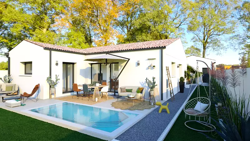 Le chauffage par pompe à chaleur et la distribution d’eau chaude individuelle garantissent un confort optimal tout en respectant le budget. Ce projet représente une opportunité à saisir pour démarrer sereinement dans une nouvelle vie dans un environnement convivial. Visuel d'illustration. Le modèle est totalement adaptable à vos envies et besoins et personnalisable grâce à de nombreuses options de finition. Nous consulter pour plus d’informations. Le prix affiché comprend le coût du terrain et de la construction hors frais de notaire et taxes. Les annonces de terrains constructibles sont sélectionnées auprès de nos partenaires fonciers selon disponibilités et autorisation de publicité en vue de construire une maison neuve avec un Contrat de Construction de Maison Individuelle dans le cadre de la loi du 19/12/1990. Ces derniers sont soit des professionnels dûment habilités à la transaction immobilière, soit des particuliers. Les terrains sélectionnés sont disponibles à la date de la première parution de l’annonce. En aucun cas Maisons ARLOGIS ou ses collaborateurs ne sont propriétaires des terrains, ne jouent un rôle d’intermédiation ou de négociation sur la transaction et ne participent à la vente. Prix indiqués par nos partenaires fonciers.