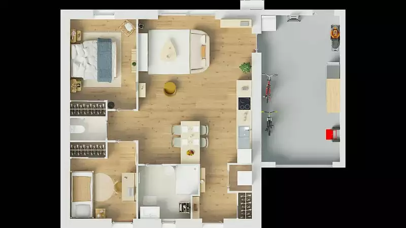 Le garage de plus de 20 m² constitue un atout majeur pour stationner votre véhicule en toute sécurité ou aménager un espace de bricolage.