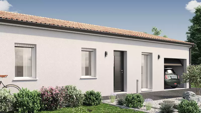 Idéal pour une maison familiale, ce modèle de plain-pied séduit par sa conception pratique et moderne. Il offre quatre chambres et une agréable pièce de vie lumineuse, pensée pour le quotidien. Son garage intégré et ses volumes bien répartis assurent confort et fonctionnalité. Une opportunité parfaite pour concrétiser un premier projet de construction. . Pour un confort optimal et conforme à la RE2025, cette maison dispose d'une PAC avec plancher chauffant et volets roulants électriques. A noter : le prix indiqué exclut les revêtements de sol des chambres, la cuisine aménagée, la peinture, la décoration, les raccordements, les frais de notaire, l’adaptation au sol et l'assurance dommages ouvrage.