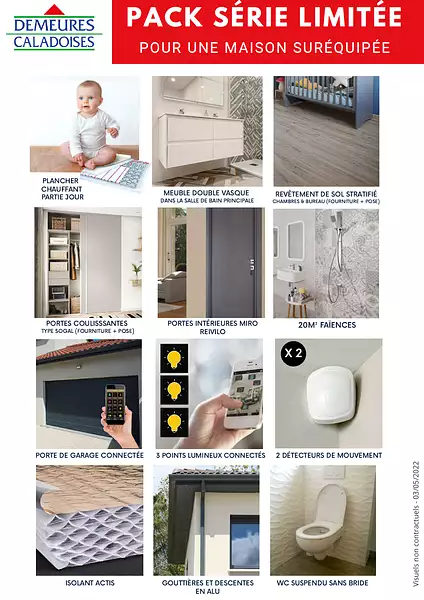 Prix maison inclus : 249 000 € VRD non inclus : € Hors aménagements extérieurs (extensions, terrasse, piscine etc), papiers peints, peintures, moquettes dans les chambres (tarif en vigueur au 20 mai 2025, modifiable sans préavis, prix variables suivant les prestations souhaitées). Hors frais d’hypothèque.