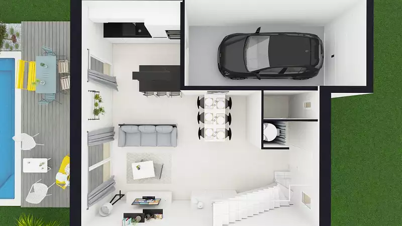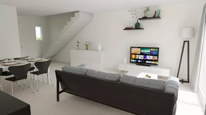 Cette maison vous offre au rez-de-chaussée une pièce de vie lumineuse par ses ouvertures, vous disposerez également d'un accès au garage par la cuisine.