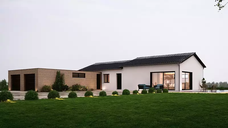 Maisons Arlogis Lyon Est vous propose des maisons 100% sur mesure. Visuel d'illustration. Le modèle est totalement adaptable à vos envies et besoins et personnalisable grâce à de nombreuses options de finition. Nous consulter pour plus d’informations. Le prix affiché comprend le coût du terrain et de la construction hors frais de notaire et taxes. Les annonces de terrains constructibles sont sélectionnées auprès de nos partenaires fonciers selon disponibilités et autorisation de publicité en vue de construire une maison neuve avec un Contrat de Construction de Maison Individuelle dans le cadre de la loi du 19/12/1990. Ces derniers sont soit des professionnels dûment habilités à la transaction immobilière, soit des particuliers. Les terrains sélectionnés sont disponibles à la date de la première parution de l’annonce. En aucun cas Maisons ARLOGIS ou ses collaborateurs ne sont propriétaires des terrains, ne jouent un rôle d’intermédiation ou de négociation sur la transaction et ne participent à la vente. Prix indiqués par nos partenaires fonciers.