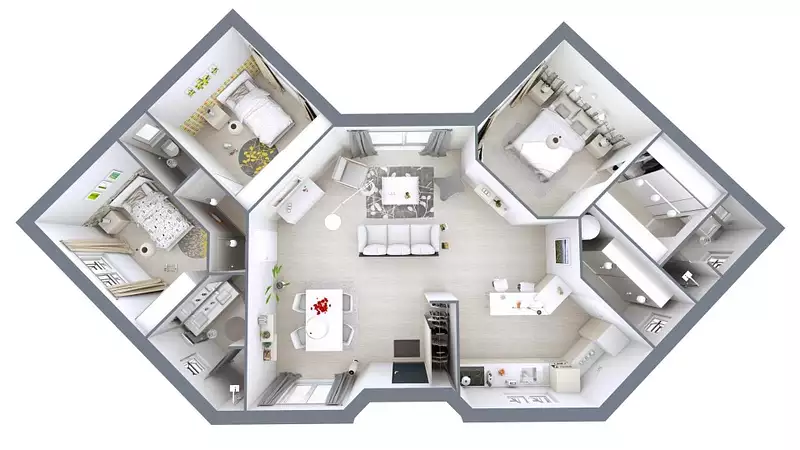 Idée de réalisation en modèle prêt à décorer sur l'un de nos terrains partenaires, sous réserve de disponibilités. Voir détails en agence.