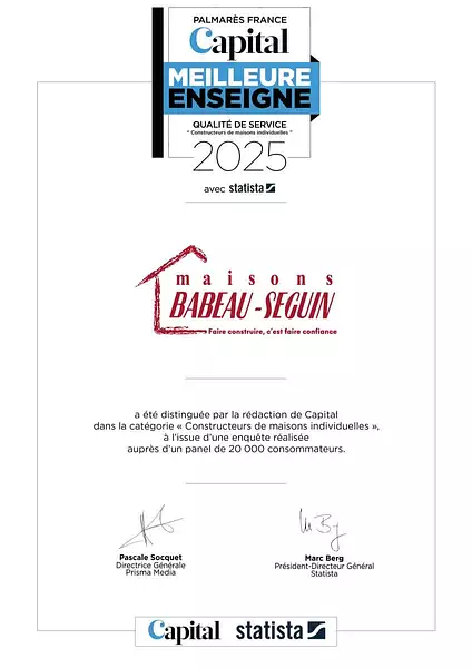 Ne manquez pas cette opportunité de construire la maison de vos rêves avec Babeau-Seguin, le constructeur qui allie qualité, prix et satisfaction client.