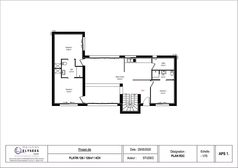 Proposée par MAISONS ELYSEES OCEAN AGENCE DE LA TREMBLADE – 5 pièces - 4 chambres - terrain 860 m²