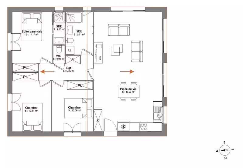 . (Plan personnalisable). Tous nos ouvrages sont réalisés sur-mesure en fonction de vos attentes et de nos échanges avec vous ainsi que dans le respect de la règlementation RE 2020. Ce projet comporte les garanties suivantes: Contrat de construction CCMI. Dommage/Ouvrage. RC Garantie décennale. Parfaite achèvement. Etude de sol G2. Prix et délais convenu. Garantie de livraison. Garantie financière Pour votre tranquillité nous nous occupons de toutes les formalités administratives.