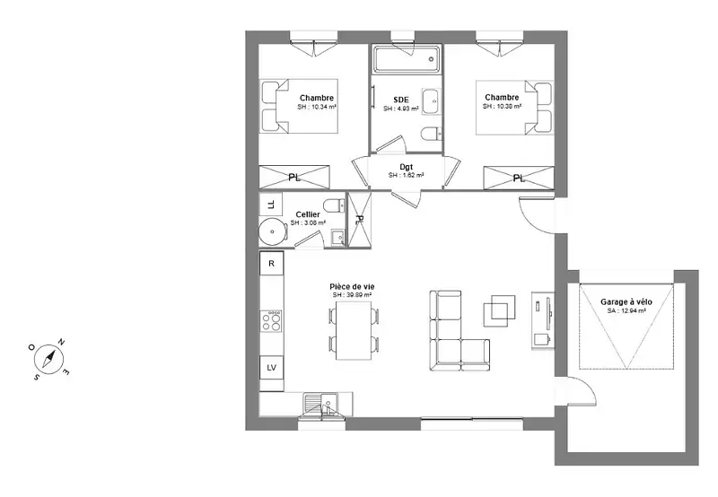 . (Plan personnalisable). Tous nos ouvrages sont réalisés sur-mesure en fonction de vos attentes et de nos échanges avec vous ainsi que dans le respect de la règlementation RE 2020. Ce projet comporte les garanties suivantes: Contrat de construction CCMI. Dommage/Ouvrage. RC Garantie décennale. Parfaite achèvement. Etude de sol G2. Prix et délais convenu. Garantie de livraison. Garantie financière Pour votre tranquillité nous nous occupons de toutes les formalités administratives.