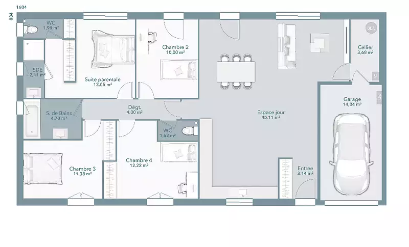 Proposée par MAISONS FRANCE CONFORT – 5 pièces - 4 chambres - terrain 468 m²