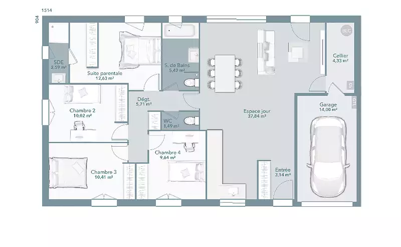 Proposée par MAISONS FRANCE CONFORT – 5 pièces - 4 chambres - terrain 468 m²
