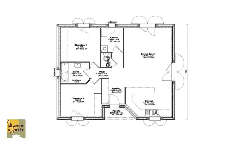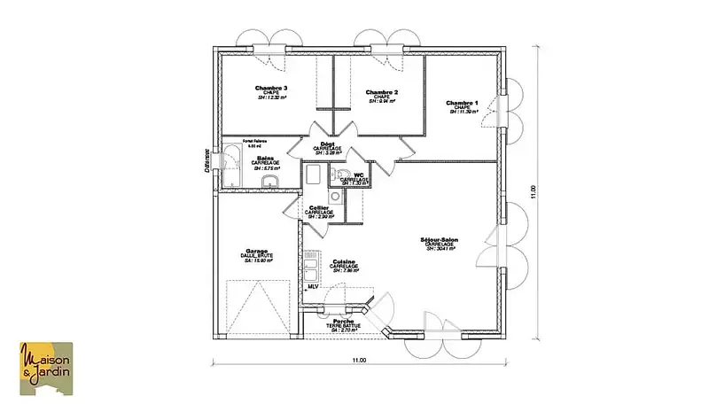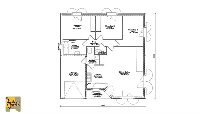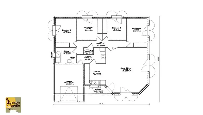 Proposée par MAISON ET JARDIN – 4 pièces - 3 chambres - terrain 871 m²