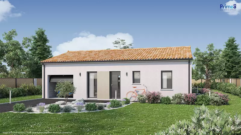 Idéale pour une première acquisition, charmante maison de plain-pied d’une surface habitable de 75 m² composée d’un espace de vie avec cuisine ouverte de 40 m² environ, un accès cellier et garage, une salle de bains avec baignoire, un wc séparé et deux chambres avec placards. Pour vous assurer un confort de vie et conformément à la RE2025, nous avons choisi un mode de chauffage par PAC + plancher chauffant, volets roulants électriques. Prix hors fourniture et pose : des appareils sanitaires (sauf système de chauffage et d'eau chaude sanitaire), du carrelage et de la faïence, des revêtements de sol dans les chambres. Hors décoration et aménagement intérieur et peinture. Hors raccordements, frais de notaire et dommage ouvrage.
