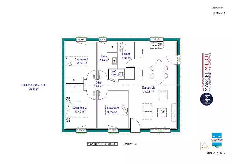 Proposée par LES MAISONS MILLOT – 5 pièces - 3 chambres - terrain 610 m²
