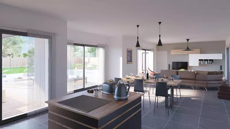 Et si votre future maison était unique ?. Imaginez un espace pensé pour votre confort et votre style de vie, où chaque détail peut être adapté à vos envies. Avec plus de 140 m² d’optimisation et de lumière, cette maison vous offre 4 chambres spacieuses, 2 salles de bains modernes et une pièce de vie conviviale, idéale pour partager des moments inoubliables. Modulable, élégante et fonctionnelle, elle s’adapte à votre quotidien et à vos projets futurs. Besoin d’un bureau ? D’une suite parentale plus grande ? D’un espace ouvert sur l’extérieur ? Tout est possible !. Construisez sur le terrain de votre choix et profitez d’une architecture contemporaine, alliant confort, qualité et performance énergétique. Pour un confort optimal et conforme à la RE2025, cette maison dispose d’une PAC avec plancher chauffant au rez-de-chaussée, radiateurs à l’étage et volets roulants électriques. À noter : Le prix indiqué exclut les revêtements de sol des chambres, la cuisine aménagée, la peinture, la décoration, les raccordements, les frais de notaire et l’assurance dommages-ouvrage. (Piscine non contractuelle, non comprise dans le prix).
