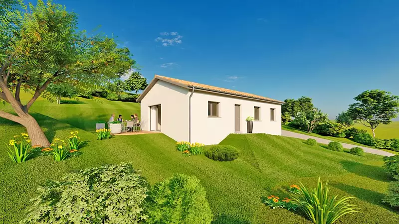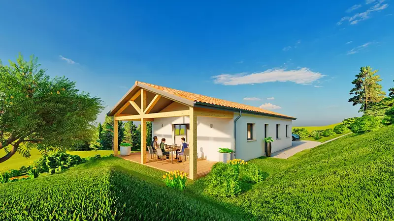 Terrain en accord avec notre partenaire foncier, sous réserve de disponibilité. Prix et visuels non contractuels. Projet conforme à la RE2020. Visuel d'illustration. Le modèle est totalement adaptable à vos envies et besoins et personnalisable grâce à de nombreuses options de finition. Nous consulter pour plus d’informations. Le prix affiché comprend le coût du terrain et de la construction hors frais de notaire et taxes. Les annonces de terrains constructibles sont sélectionnées auprès de nos partenaires fonciers selon disponibilités et autorisation de publicité en vue de construire une maison neuve avec un Contrat de Construction de Maison Individuelle dans le cadre de la loi du 19/12/1990. Ces derniers sont soit des professionnels dûment habilités à la transaction immobilière, soit des particuliers. Les terrains sélectionnés sont disponibles à la date de la première parution de l’annonce. En aucun cas Maisons ARLOGIS ou ses collaborateurs ne sont propriétaires des terrains, ne jouent un rôle d’intermédiation ou de négociation sur la transaction et ne participent à la vente. Prix indiqués par nos partenaires fonciers.