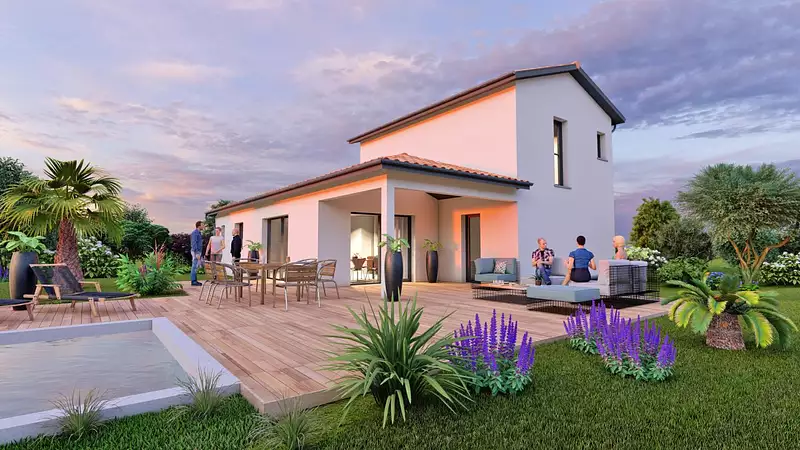 Terrain en accord avec notre partenaire foncier, sous réserve de disponibilité. Prix et visuels non contractuels. Projet conforme à la RE2020. Visuel d'illustration. Le modèle est totalement adaptable à vos envies et besoins et personnalisable grâce à de nombreuses options de finition. Nous consulter pour plus d’informations. Le prix affiché comprend le coût du terrain et de la construction hors frais de notaire et taxes. Les annonces de terrains constructibles sont sélectionnées auprès de nos partenaires fonciers selon disponibilités et autorisation de publicité en vue de construire une maison neuve avec un Contrat de Construction de Maison Individuelle dans le cadre de la loi du 19/12/1990. Ces derniers sont soit des professionnels dûment habilités à la transaction immobilière, soit des particuliers. Les terrains sélectionnés sont disponibles à la date de la première parution de l’annonce. En aucun cas Maisons ARLOGIS ou ses collaborateurs ne sont propriétaires des terrains, ne jouent un rôle d’intermédiation ou de négociation sur la transaction et ne participent à la vente. Prix indiqués par nos partenaires fonciers.