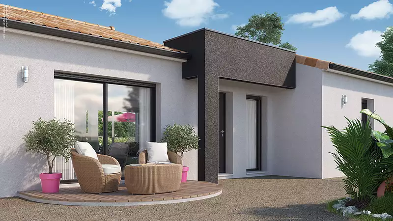 Un équilibre parfait entre élégance et fonctionnalité ! Cette maison est conçue pour allier confort, modernité et espaces bien pensés. Un vaste espace de vie de plus de 43 m², baigné de lumière, invite à la convivialité, tandis que les trois chambres spacieuses assurent calme et intimité. Son garage attenant et son cellier astucieux complètent un agencement pensé pour un quotidien fluide et organisé. Moderne, fonctionnelle et évolutive, elle s’adapte à votre mode de vie et à vos envies. Un cadre de vie idéal pour ceux qui veulent conjuguer confort et raffinement… Prêts à vous y projeter ? . Pour un confort optimal et conforme à la RE2025, cette maison dispose d’une PAC avec plancher chauffant et volets roulants électriques. À noter : Le prix indiqué exclut les revêtements de sol des chambres, la cuisine aménagée, la peinture, la décoration, les frais de notaire et l’assurance dommages ouvrage.