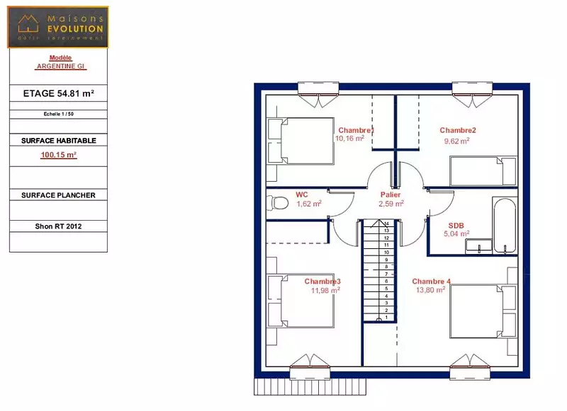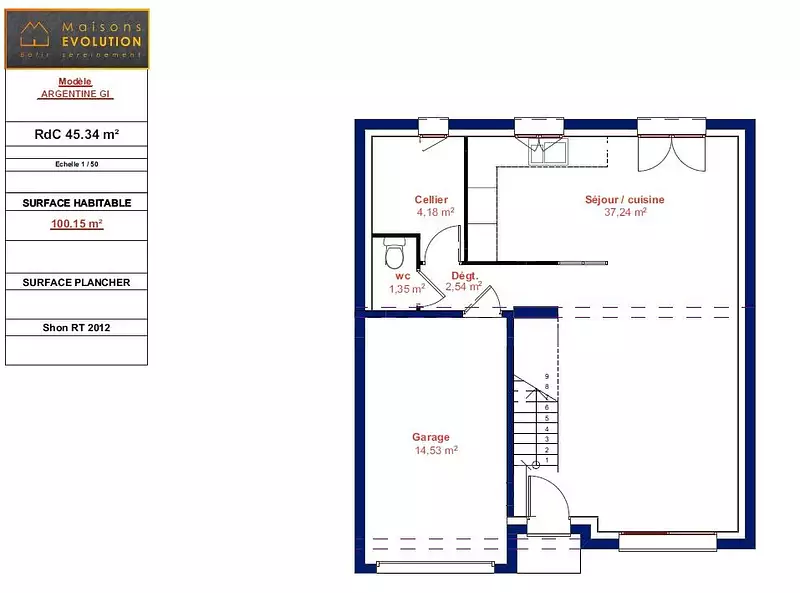 Proposée par MAISONS EVOLUTION – 5 pièces - 4 chambres - terrain 640 m²