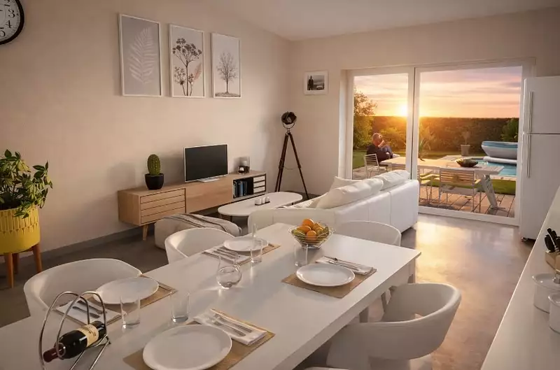 Les espaces de vie sont lumineux, ouverts vers l'extérieur, favorisant les moments de partage et de convivialité. Les chambres offrent calme et intimité, tandis que les prestations modernes assurent bien-être, performance énergétique et sérénité.
