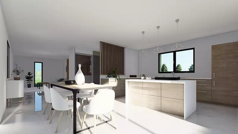 La maison, d'une surface habitable de 100 m², se distingue par son agencement moderne et fonctionnel. Avec un grand espace de vie de 50 m², elle est conçue pour favoriser les moments de convivialité en famille. Ses trois chambres spacieuses garantissent à chacun un espace personnel, tandis qu'un garage attenant apporte une réelle valeur ajoutée au quotidien. Le système de chauffage par pompe à chaleur et la distribution d'eau chaude individuelle assurent un confort optimal tout en respectant l'environnement.