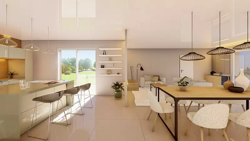 La maison, d'une surface habitable de 120 m², se compose de 5 pièces dont 3 chambres, offrant un agencement bien pensé pour le confort et l'intimité de chaque membre de la famille. Le séjour de 45 m² constitue un véritable espace de vie, parfait pour partager des moments en famille ou entre amis. Le style contemporain de cette construction, alliant modernité et fonctionnalité, sera agrémenté d’un système de chauffage par pompe à chaleur et d’une distribution d’eau chaude individuelle.