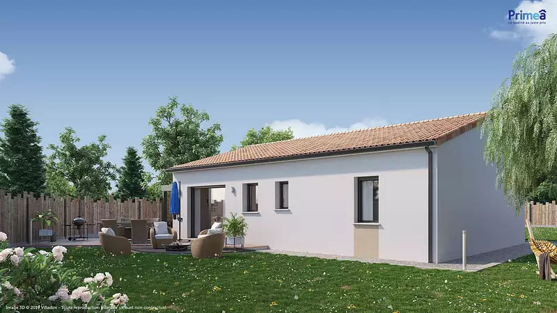 Charmante maison de plain-pied spacieuse et stylée. Son entrée est couverte par un porche, qui ouvre sur la pièce de vie de 40 m² environ. L’espace jour et l’espace nuit ont été optimisés par notre bureau d’études. Côté nuit, 3 chambres avec rangement, une salle de bains. Ses jeux d'enduits personnalisables sauront vous séduirePour vous assurer un confort de vie et conformèment à la RE2025, nous avons chosi un mode de chauffage par PAC + plancher chauffant, volets roulants électriques, Prix hors fourniture et pose : des appareils sanitaires (sauf système de chauffage et d'eau chaude sanitaire), du carrelage et de la faïence, des revêtements de sol dans les chambres. Hors décoration et aménagement intérieur et peinture. Hors raccordements, frais de notaire et dommage ouvrage.