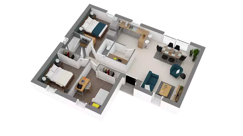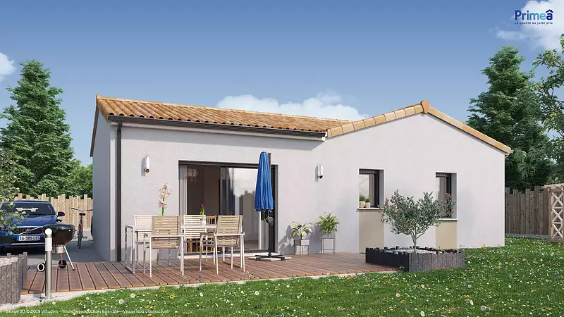 Bien pensée et fonctionnelle. Avec son architecture en L et de plain-pied, la maison CARNEY vous séduira par sa cuisine ouverte sur un bel espace de vie lumineux et ses trois chambresPour vous assurer un confort de vie et conformèment à la RE2025, nous avons chosi un mode de chauffage par PAC + plancher chauffant, volets roulants électriques, Prix hors fourniture et pose : des appareils sanitaires (sauf système de chauffage et d'eau chaude sanitaire), du carrelage et de la faïence, des revêtements de sol dans les chambres. Hors décoration et aménagement intérieur et peinture. Hors raccordements, frais de notaire et dommage ouvrage.