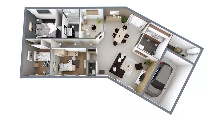 Idée de réalisation en modèle prêt à décorer sur l'un de nos terrains partenaires, sous réserve de disponibilités. Voir détails en agence.