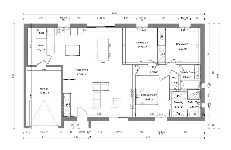 Proposée par CONSTRUCTIONS IDEALE DEMEURE – 4 pièces - 3 chambres - terrain 610 m²
