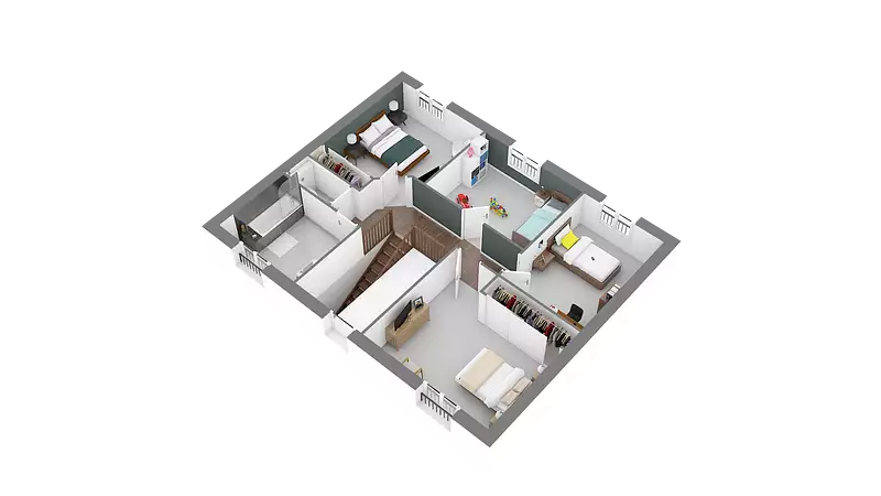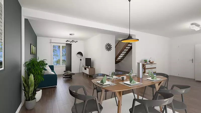 . La maison dispose également d’une salle de bains familiale et de WC séparés. La configuration intérieure est entièrement modulable pour s’adapter à votre mode de vie et à vos besoins spécifiques. Conçue selon la réglementation environnementale RE2020, cette maison moderne constitue une base solide?; d’autres modèles sont disponibles, et un projet 100?% sur mesure peut être étudié selon votre budget et vos attentes.