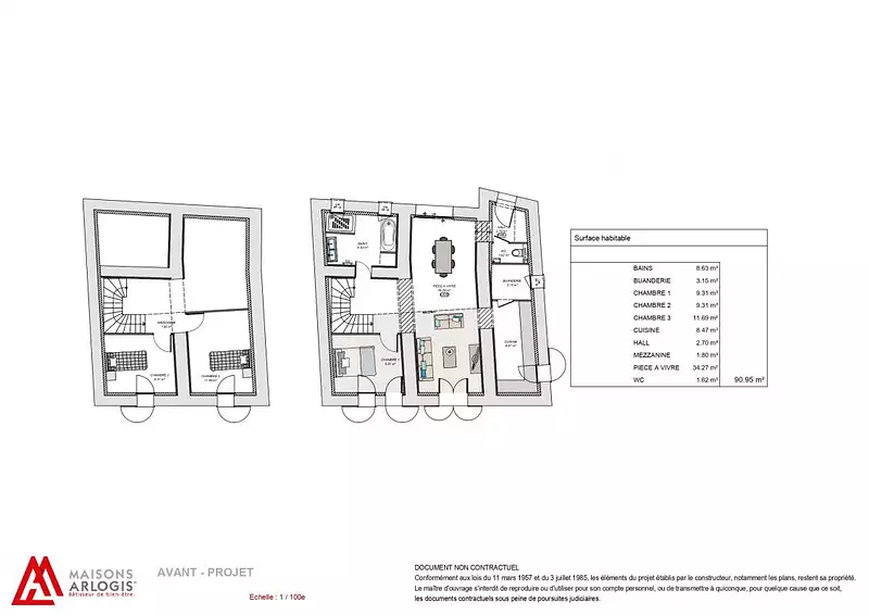 Projet en accord avec notre partenaire immobilier. Visuel d'illustration. Le modèle est totalement adaptable à vos envies et besoins et personnalisable grâce à de nombreuses options de finition. Nous consulter pour plus d’informations. Le prix affiché comprend le coût du terrain et de la construction hors frais de notaire et taxes. Les annonces de terrains constructibles sont sélectionnées auprès de nos partenaires fonciers selon disponibilités et autorisation de publicité en vue de construire une maison neuve avec un Contrat de Construction de Maison Individuelle dans le cadre de la loi du 19/12/1990. Ces derniers sont soit des professionnels dûment habilités à la transaction immobilière, soit des particuliers. Les terrains sélectionnés sont disponibles à la date de la première parution de l’annonce. En aucun cas Maisons ARLOGIS ou ses collaborateurs ne sont propriétaires des terrains, ne jouent un rôle d’intermédiation ou de négociation sur la transaction et ne participent à la vente. Prix indiqués par nos partenaires fonciers.