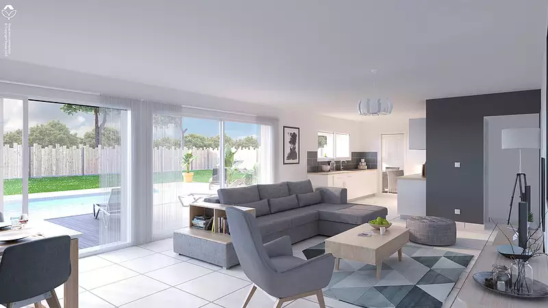 Laissez-vous séduire par cette maison contemporaine, où volumes généreux et fonctionnalité s’unissent pour créer un cadre de vie idéal. Son vaste espace de vie baigné de lumière invite à la convivialité et à la détente. Pensée pour s’adapter à votre quotidien, elle offre 3 chambres confortables, dont une suite parentale avec dressing et salle d’eau privée. Une seconde salle d’eau vient compléter cet agencement optimisé. Atout majeur : une grande salle de jeux qui ouvre le champ des possibles ! Bureau, espace détente, salle de sport… Laissez libre cours à vos envies. Avec son architecture élégante et personnalisable, cette maison s’adapte à vos besoins pour devenir votre chez-vous parfait. Pour un confort optimal et conforme à la RE2025, cette maison dispose d’une PAC avec plancher chauffant et volets roulants électriques. À noter : Le prix indiqué exclut les revêtements de sol des chambres, la cuisine aménagée, la peinture, la décoration, les raccordements, les frais de notaire et l’assurance dommages-ouvrage. (piscine non contractuelle, non comprise dans le prix). Et si votre projet commençait ici ? Contactez-nous dès maintenant pour donner vie à votre maison idéale !.