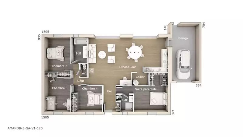 Terrain proposé par un partenaire foncier selon disponibilités et autorisation de publicité au prix de 269 900 €. Hors droit d'enregistrement et frais de notaire. Maison proposée, avec un contrat de construction de maison individuelle, dans le cadre de la loi du 19/12/1990, au prix de 200 100 € (Hors branchements et raccordements, papiers peints, peintures, revêtement de sol dans les chambres, qui sont chiffrés dans les travaux qui restent à charge du client. Tarif modifiable sans préavis). Étiquette énergie : A. Différents modèles disponibles pour ce terrain. Assurances et garanties du constructeur comprises (RC professionnelle, décennale, dommage ouvrage).