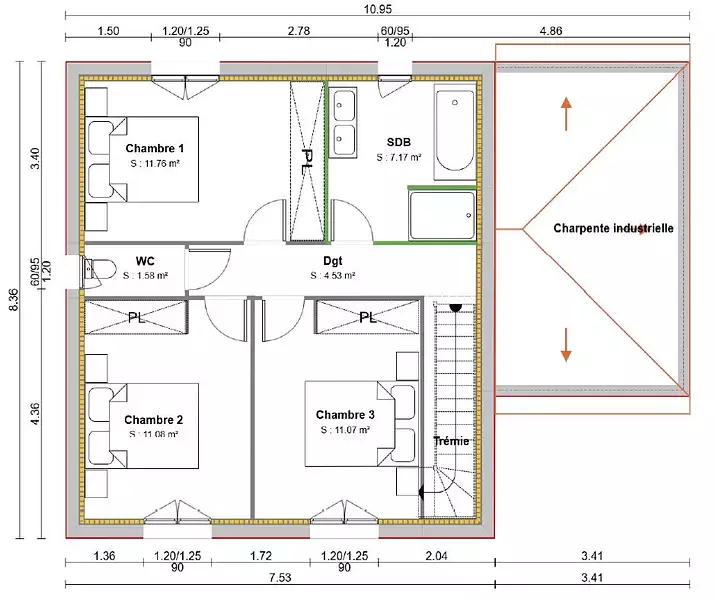 Nous vous proposons une maison contemporaine de 95 m², parfaitement adaptée à la vie de famille :