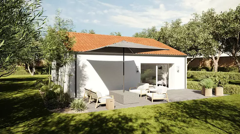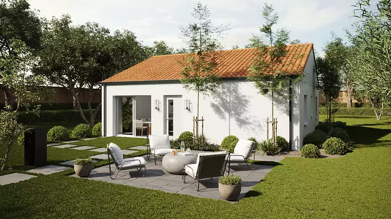 Le modèle Iona est également personnalisable selon vos envies. Vous pouvez choisir parmi de nombreuses options pour la rendre unique : enduit coloré, tuiles rondes de pays ou plates anthracites, et bien plus encore. De plus, cette maison est disponible avec ou sans garage accolé, selon vos besoins.