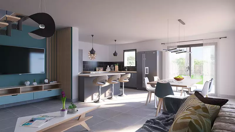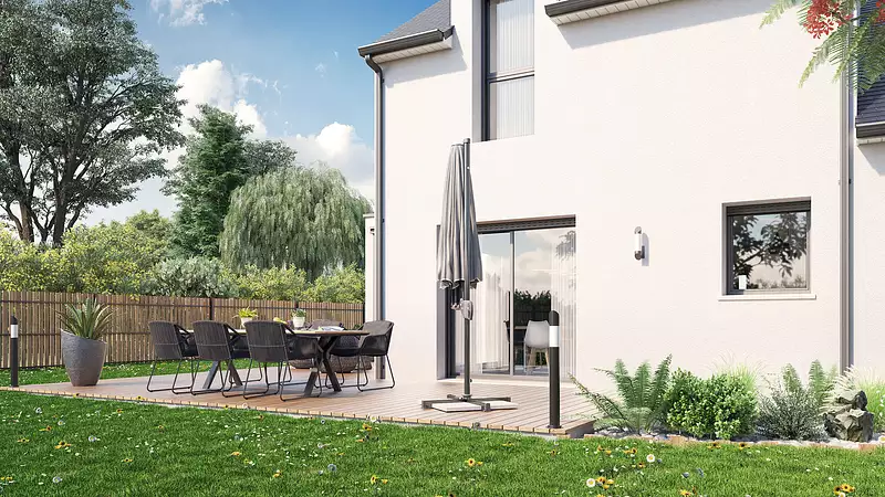 Offrez-vous un espace de vie généreux et baigné de lumière, conçu pour allier esthétique et confort. Avec ses 3 chambres, dont une suite parentale avec dressing et salle d’eau, ainsi qu’un bureau idéal pour le télétravail, cette maison s’adapte à tous vos projets. Son architecture fluide et moderne met en valeur des volumes spacieux et bien pensés, créant un intérieur chaleureux et fonctionnel. Chaque détail peut être personnalisé pour correspondre à votre style de vie. Faites de cette maison votre futur cocon, adaptée à votre terrain et à vos envies. Besoin d’inspiration ? Contactez-nous pour en discuter !. Pour un confort optimal et conforme à la RE2025, cette maison dispose d’une PAC avec plancher chauffant au rez-de-chaussée, radiateurs à l’étage et volets roulants électriques. À noter : Le prix indiqué exclut les revêtements de sol des chambres, la cuisine aménagée, la peinture, la décoration, les raccordements, les frais de notaire et l’assurance dommages-ouvrage.