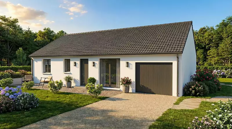 La Focus 79 se distingue par sa charpente de type fermette, un choix architectural qui garantit à la fois solidité et esthétique, tout en optimisant l'espace sous toit. Cette maison intègre également un garage, solution pratique pour sécuriser votre véhicule ou pour disposer d'un espace de rangement supplémentaire.