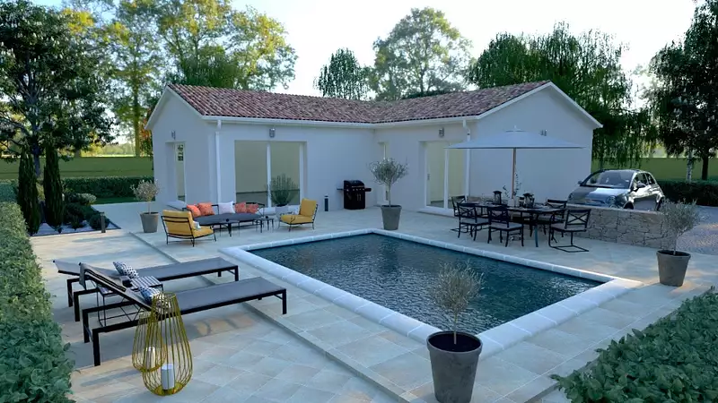 Idée de réalisation en modèle prêt à décorer sur l’un de nos terrains partenaires, sous réserve de disponibilités. Voir détails en agence.