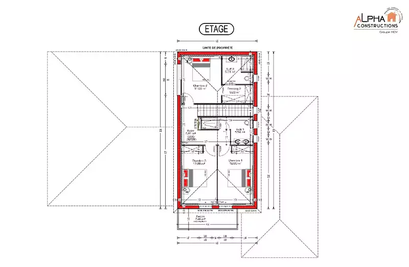 Proposée par ALPHA CONSTRUCTIONS – 6 pièces - 4 chambres - terrain 761 m²
