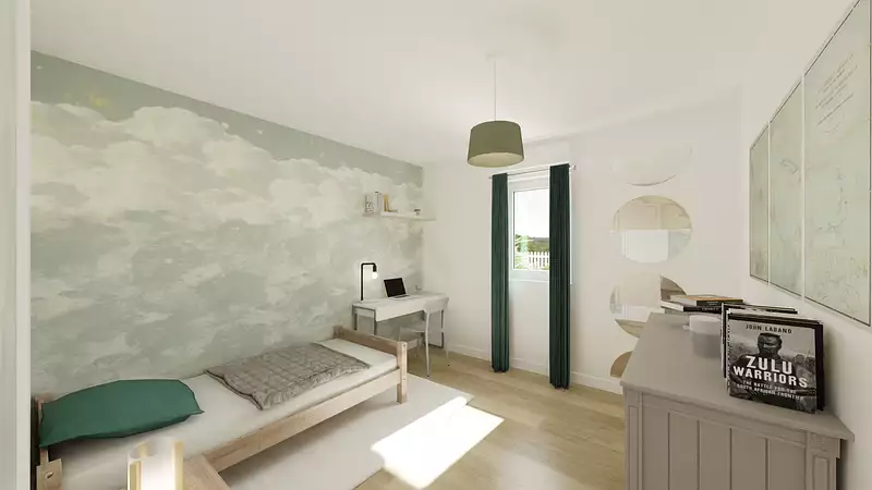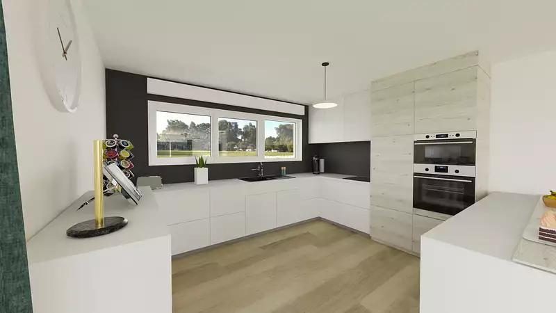 La construction sera livré avec un carrelage 45*45 dans les piéces de jour et un revetement stratifié dans les chambres. La SDB sera équipée d'un lavabo + douche italienne compris faience et paroi vitrée.