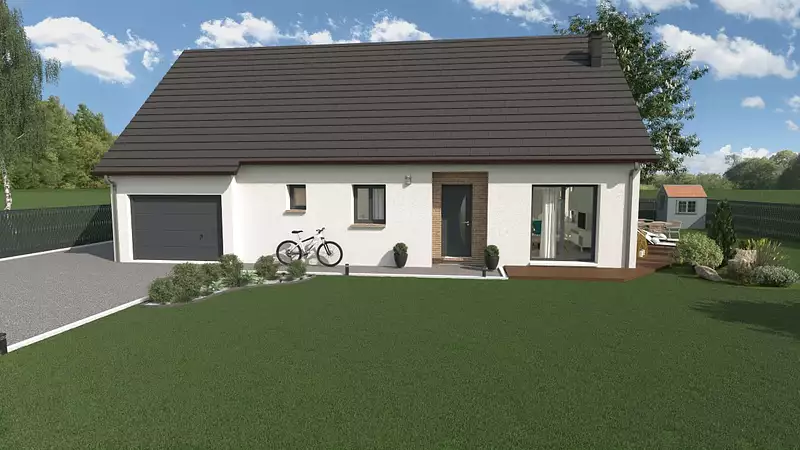 Habitat concept vous propose ce pavillon de plain pied répondant aux normes RE 2020. Il fait 95 m² habitable et comprend une cuisine ouverte sur un grand séjour, 3 chambres, 1 salle de bains, un wc , un cellier et un garage