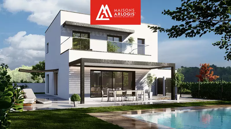 Maisons Arlogis Lyon Est vous propose des maisons 100% sur mesure. Visuel d'illustration. Le modèle est totalement adaptable à vos envies et besoins et personnalisable grâce à de nombreuses options de finition. Nous consulter pour plus d’informations. Le prix affiché comprend le coût du terrain et de la construction hors frais de notaire et taxes. Les annonces de terrains constructibles sont sélectionnées auprès de nos partenaires fonciers selon disponibilités et autorisation de publicité en vue de construire une maison neuve avec un Contrat de Construction de Maison Individuelle dans le cadre de la loi du 19/12/1990. Ces derniers sont soit des professionnels dûment habilités à la transaction immobilière, soit des particuliers. Les terrains sélectionnés sont disponibles à la date de la première parution de l’annonce. En aucun cas Maisons ARLOGIS ou ses collaborateurs ne sont propriétaires des terrains, ne jouent un rôle d’intermédiation ou de négociation sur la transaction et ne participent à la vente. Prix indiqués par nos partenaires fonciers.