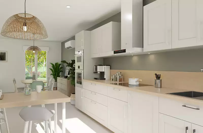 Garanties et assurances obligatoires incluses (voir détails en agence). Prix indicatif hors peintures, hors options et hors frais annexes. Terrain sélectionné et vu pour vous sous réserve de disponibilité et au prix indiqué par notre partenaire foncier. Visuels non contractuels.